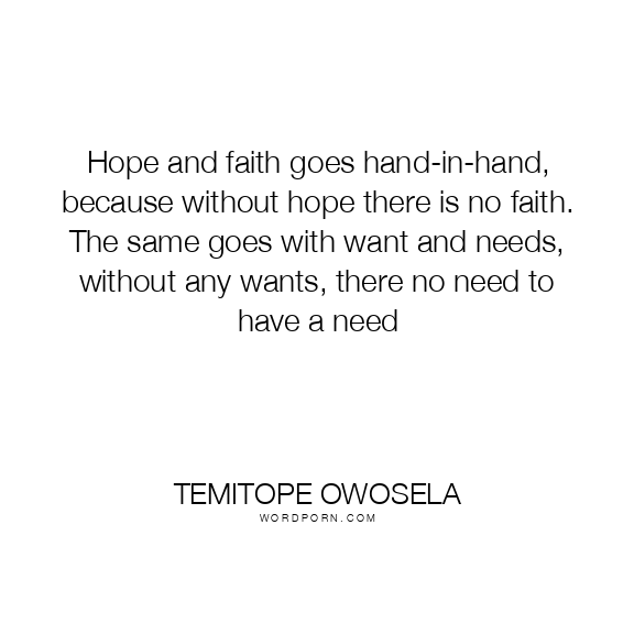 Hope and faith goes hand-in-hand, because without hope there is no faith. The same goes with want and needs, without any wants, there no need to have a need