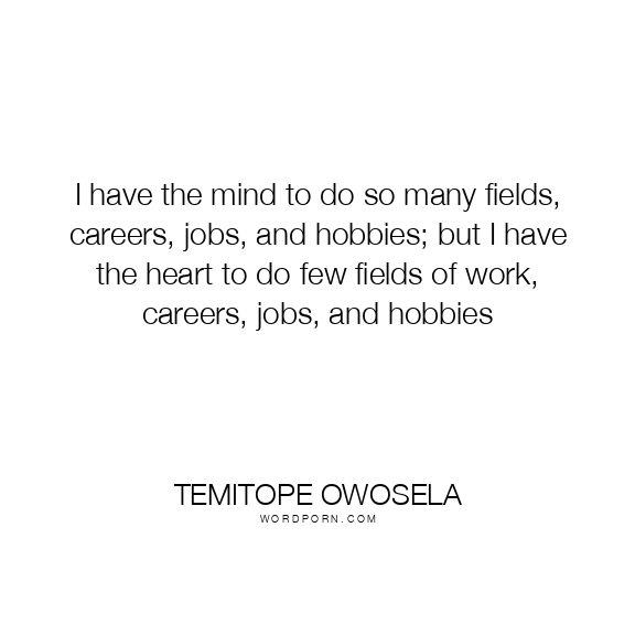 I have the mind to do so many fields, careers, jobs, and hobbies; but I have the heart to do few fields of work, careers, jobs, and hobbies