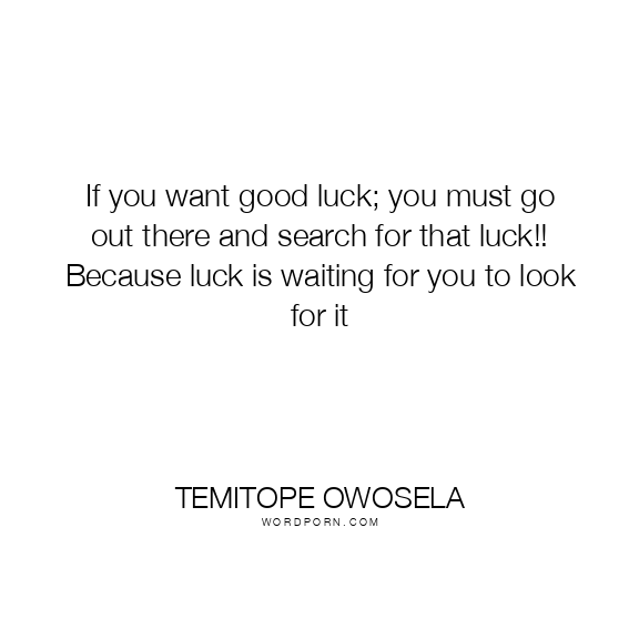 If you want good luck; you must go out there and search for that luck!! Because luck is waiting for you to look for it
