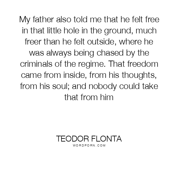 My father also told me that he felt free in that little hole in the ground, much freer than he felt outside, where he was always being chased by the criminals of the regime. That freedom came from inside, from his thoughts, from his soul; and nobody could take that from him