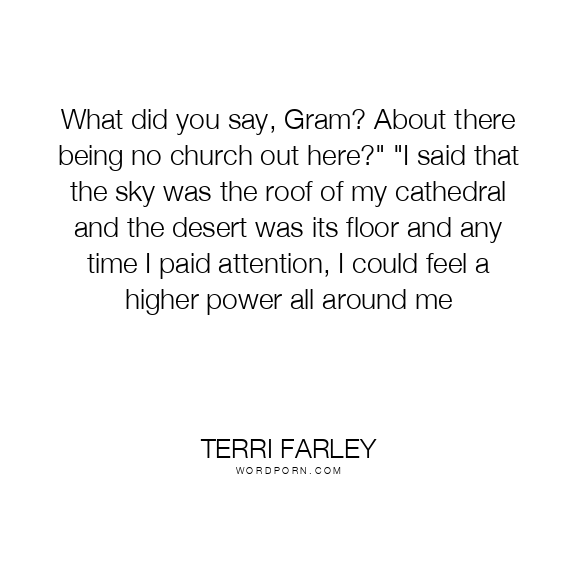 What did you say, Gram? About there being no church out here?" "I said that the sky was the roof of my cathedral and the desert was its floor and any time I paid attention, I could feel a higher power all around me