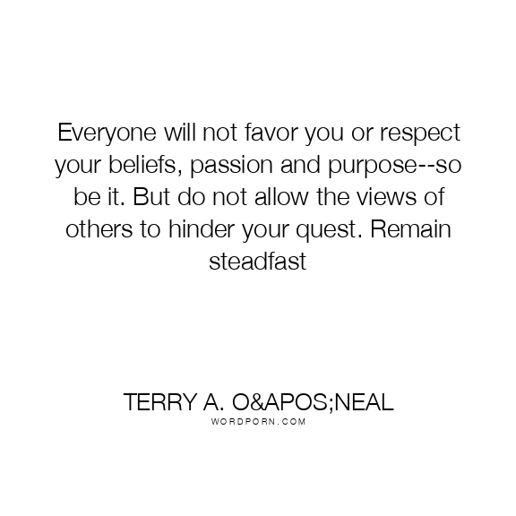 Everyone will not favor you or respect your beliefs, passion and purpose--so be it. But do not allow the views of others to hinder your quest. Remain steadfast