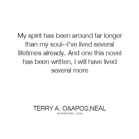 My spirit has been around far longer than my soul--I've lived several lifetimes already. And one this novel has been written, I will have lived several more
