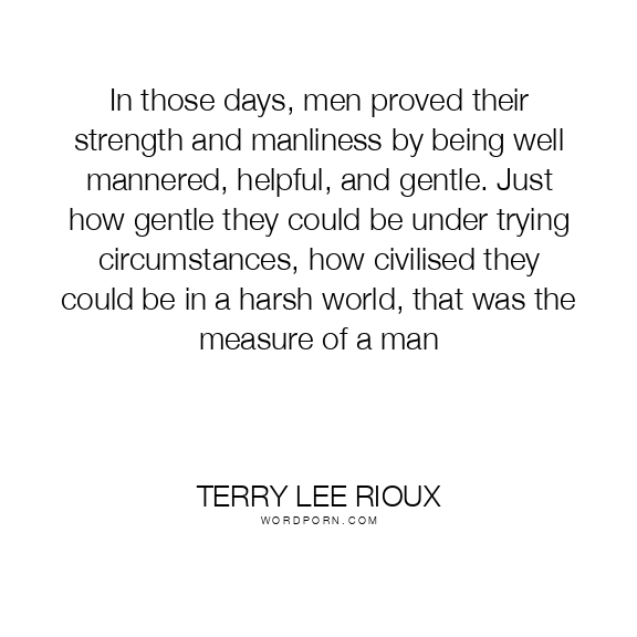 In those days, men proved their strength and manliness by being well mannered, helpful, and gentle. Just how gentle they could be under trying circumstances, how civilised they could be in a harsh world, that was the measure of a man