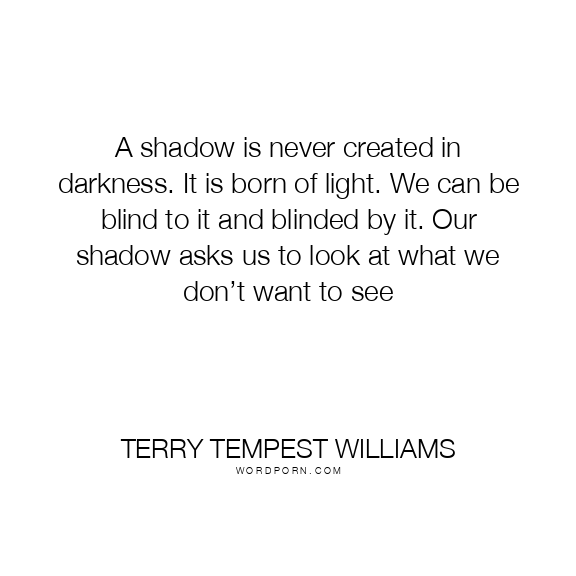 A shadow is never created in darkness. It is born of light. We can be blind to it and blinded by it. Our shadow asks us to look at what we don’t want to see