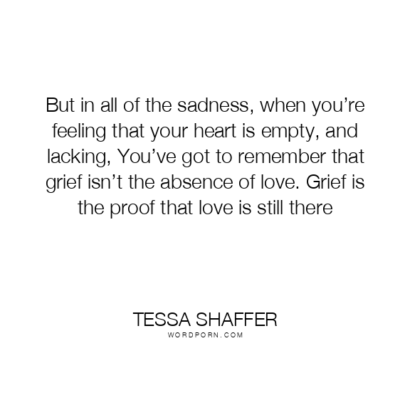 But in all of the sadness, when you’re feeling that your heart is empty, and lacking, You’ve got to remember that grief isn’t the absence of love. Grief is the proof that love is still there