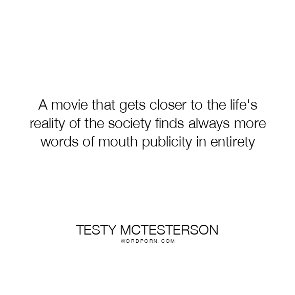 A movie that gets closer to the life's reality of the society finds always more words of mouth publicity in entirety