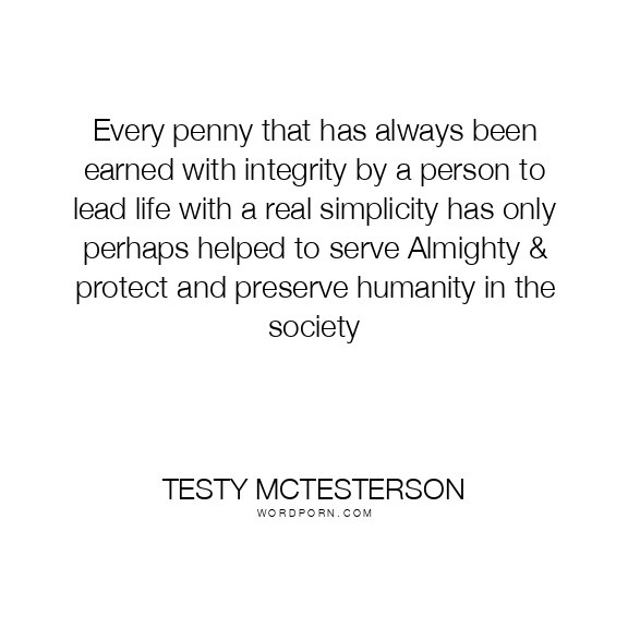 Every penny that has always been earned with integrity by a person to lead life with a real simplicity has only perhaps helped to serve Almighty & protect and preserve humanity in the society
