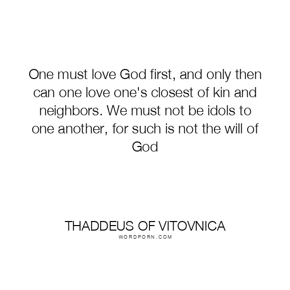 One must love God first, and only then can one love one's closest of kin and neighbors. We must not be idols to one another, for such is not the will of God
