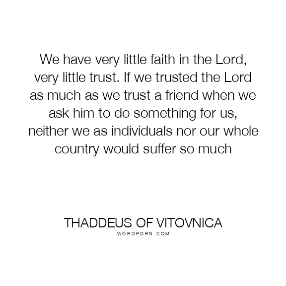 We have very little faith in the Lord, very little trust. If we trusted the Lord as much as we trust a friend when we ask him to do something for us, neither we as individuals nor our whole country would suffer so much