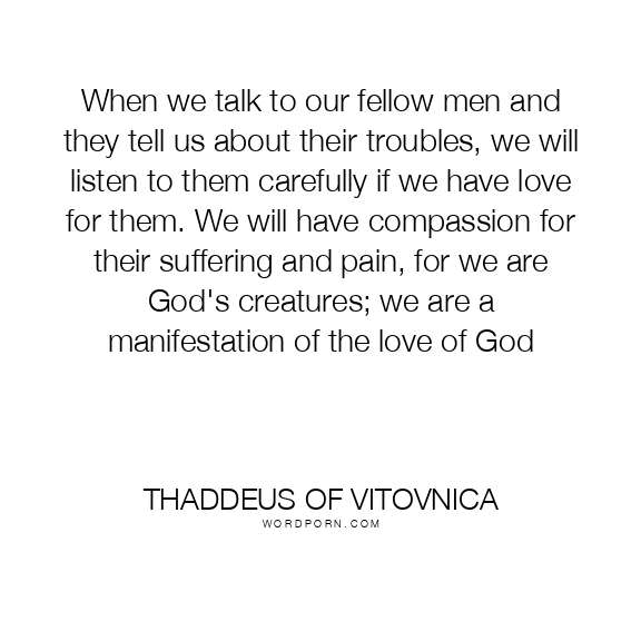 When we talk to our fellow men and they tell us about their troubles, we will listen to them carefully if we have love for them. We will have compassion for their suffering and pain, for we are God's creatures; we are a manifestation of the love of God