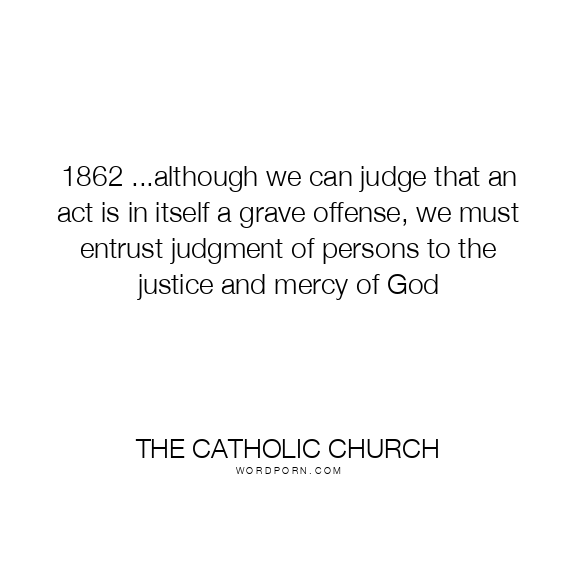 1862 ...although we can judge that an act is in itself a grave offense, we must entrust judgment of persons to the justice and mercy of God