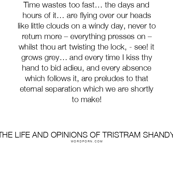 Time wastes too fast… the days and hours of it… are flying over our heads like little clouds on a windy day, never to return more – everything presses on – whilst thou art twisting the lock, - see! it grows grey… and every time I kiss thy hand to bid adieu, and every absence which follows it, are preludes to that eternal separation which we are shortly to make!