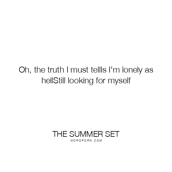 Oh, the truth I must tellIs I'm lonely as hellStill looking for myself