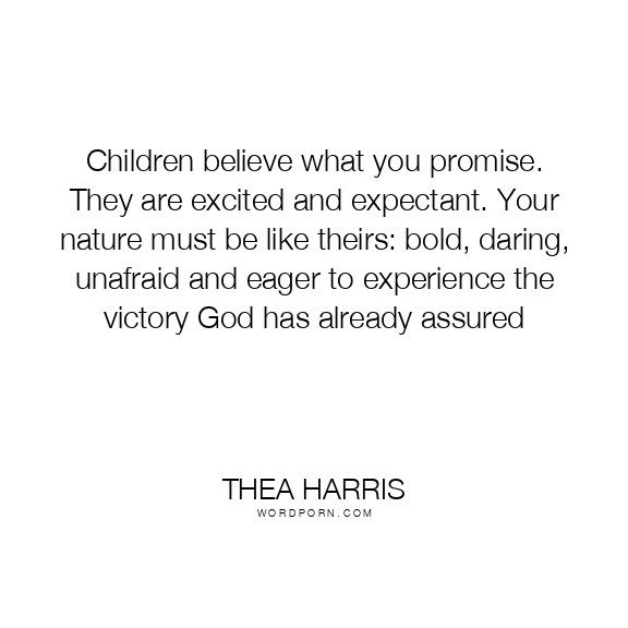 Children believe what you promise. They are excited and expectant. Your nature must be like theirs: bold, daring, unafraid and eager to experience the victory God has already assured