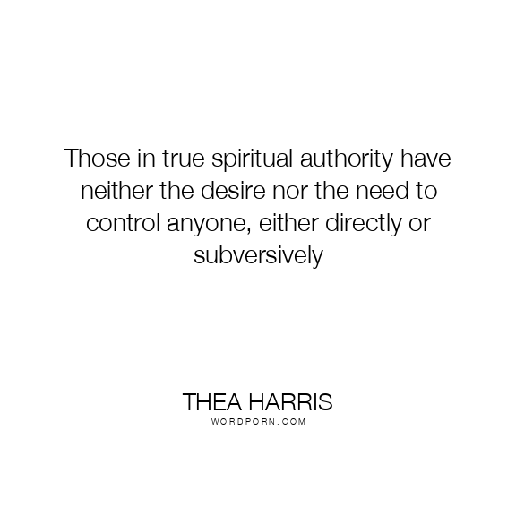 Those in true spiritual authority have neither the desire nor the need to control anyone, either directly or subversively