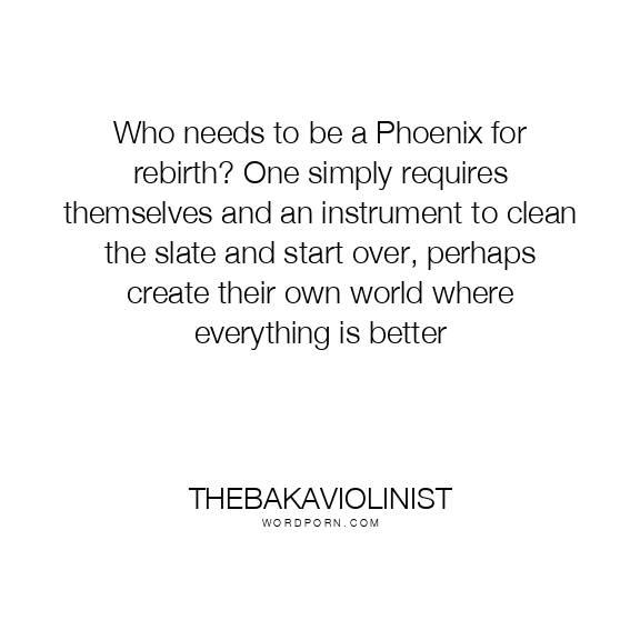 Who needs to be a Phoenix for rebirth? One simply requires themselves and an instrument to clean the slate and start over, perhaps create their own world where everything is better
