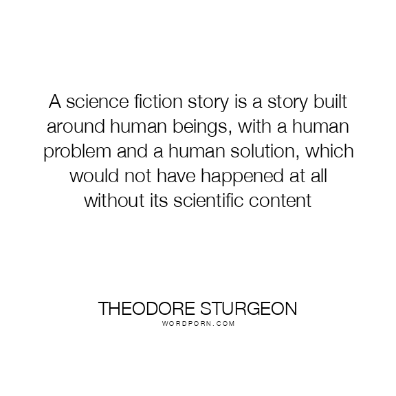 A science fiction story is a story built around human beings, with a human problem and a human solution, which would not have happened at all without its scientific content