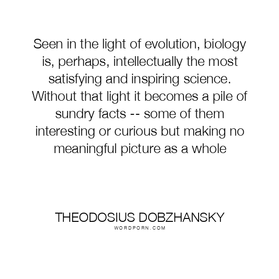 Seen in the light of evolution, biology is, perhaps, intellectually the most satisfying and inspiring science. Without that light it becomes a pile of sundry facts -- some of them interesting or curious but making no meaningful picture as a whole