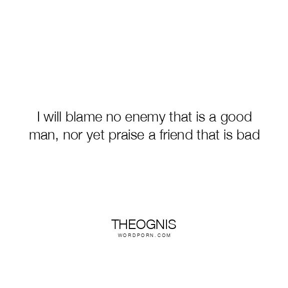 I will blame no enemy that is a good man, nor yet praise a friend that is bad