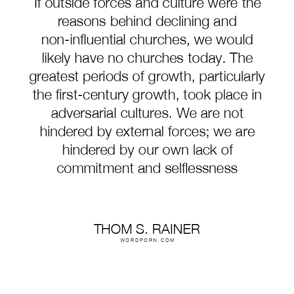 If outside forces and culture were the reasons behind declining and non-influential churches, we would likely have no churches today. The greatest periods of growth, particularly the first-century growth, took place in adversarial cultures. We are not hindered by external forces; we are hindered by our own lack of commitment and selflessness