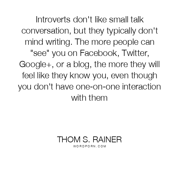 Introverts don't like small talk conversation, but they typically don't mind writing. The more people can "see" you on Facebook, Twitter, Google+, or a blog, the more they will feel like they know you, even though you don't have one-on-one interaction with them