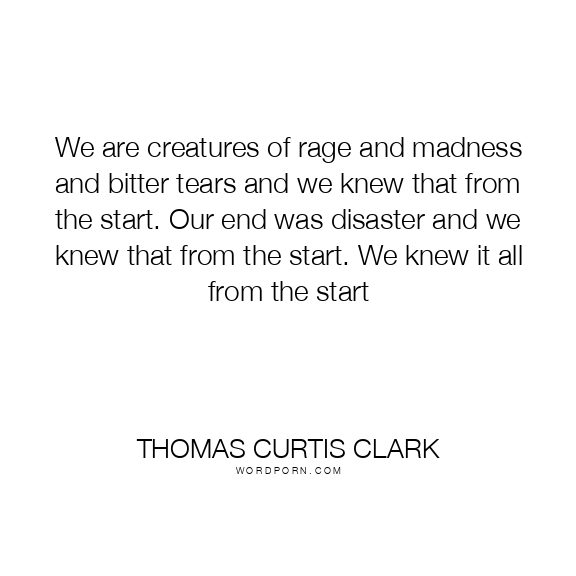 We are creatures of rage and madness and bitter tears and we knew that from the start. Our end was disaster and we knew that from the start. We knew it all from the start