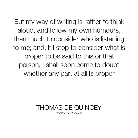 But my way of writing is rather to think aloud, and follow my own humours, than much to consider who is listening to me; and, if I stop to consider what is proper to be said to this or that person, I shall soon come to doubt whether any part at all is proper