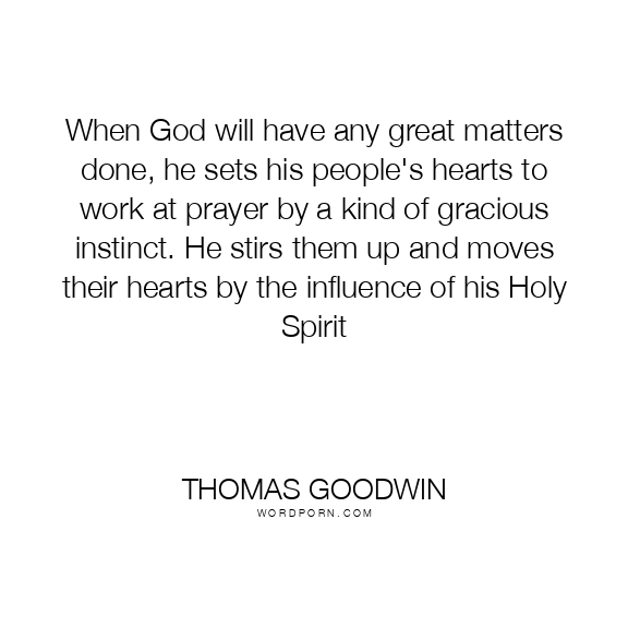 When God will have any great matters done, he sets his people's hearts to work at prayer by a kind of gracious instinct. He stirs them up and moves their hearts by the influence of his Holy Spirit