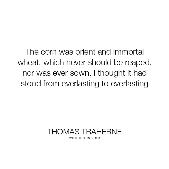 The corn was orient and immortal wheat, which never should be reaped, nor was ever sown. I thought it had stood from everlasting to everlasting