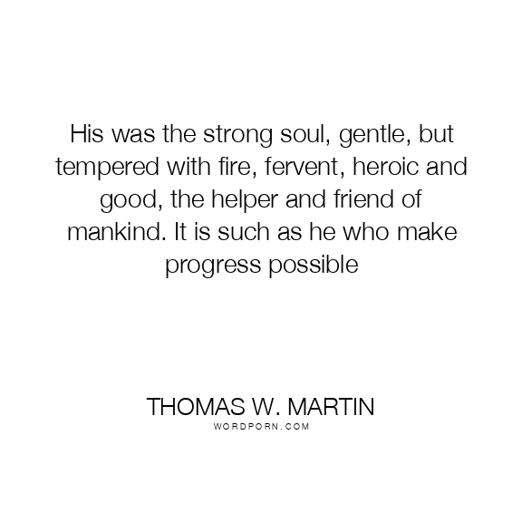 His was the strong soul, gentle, but tempered with fire, fervent, heroic and good, the helper and friend of mankind. It is such as he who make progress possible