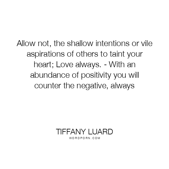 Allow not, the shallow intentions or vile aspirations of others to taint your heart; Love always. - With an abundance of positivity you will counter the negative, always