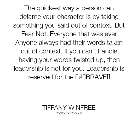The quickest way a person can defame your character is by taking something you said out of context. But Fear Not. Everyone that was ever Anyone always had their words taken out of context. If you can't handle having your words twisted up, then leadership is not for you. Leadership is reserved for the #BRAVE