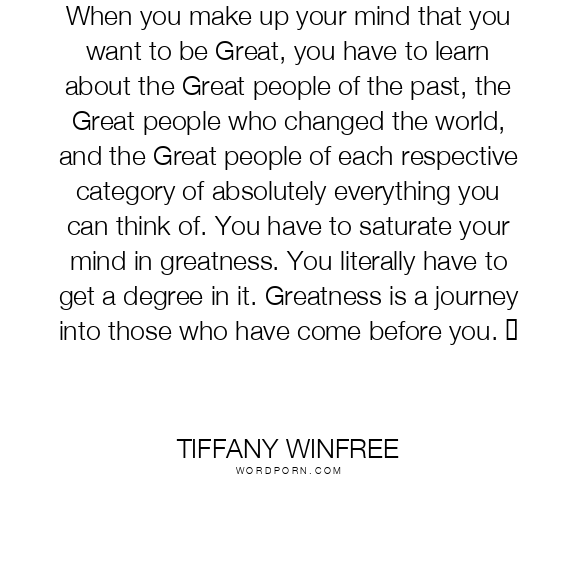 When you make up your mind that you want to be Great, you have to learn about the Great people of the past, the Great people who changed the world, and the Great people of each respective category of absolutely everything you can think of. You have to saturate your mind in greatness. You literally have to get a degree in it. Greatness is a journey into those who have come before you.