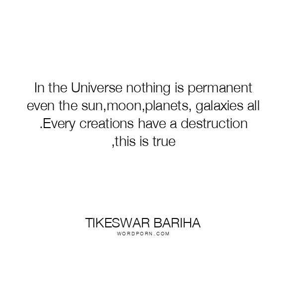 In the Universe nothing is permanent even the sun,moon,planets, galaxies all .Every creations have a destruction ,this is true