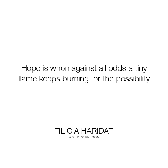 Hope is when against all odds a tiny flame keeps burning for the possibility