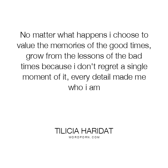 No matter what happens i choose to value the memories of the good times, grow from the lessons of the bad times because i don't regret a single moment of it, every detail made me who i am