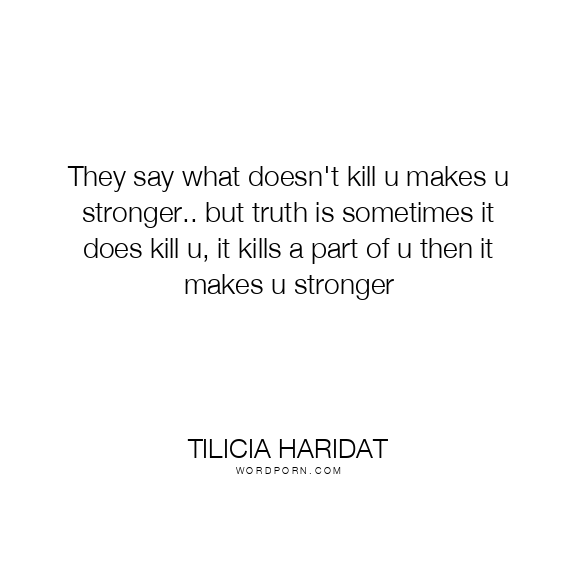 They say what doesn't kill u makes u stronger.. but truth is sometimes it does kill u, it kills a part of u then it makes u stronger