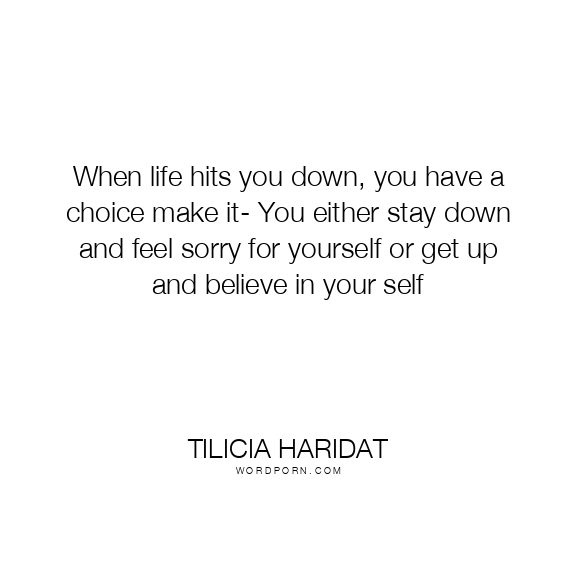 When life hits you down, you have a choice make it- You either stay down and feel sorry for yourself or get up and believe in your self