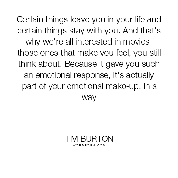 Certain things leave you in your life and certain things stay with you. And that's why we're all interested in movies- those ones that make you feel, you still think about. Because it gave you such an emotional response, it's actually part of your emotional make-up, in a way