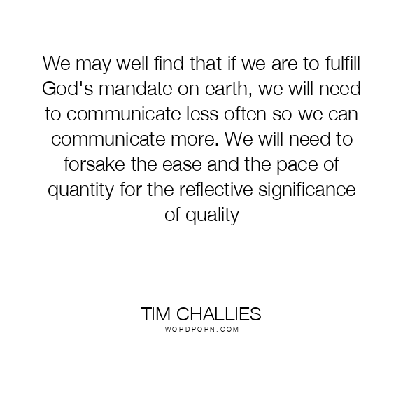 We may well find that if we are to fulfill God's mandate on earth, we will need to communicate less often so we can communicate more. We will need to forsake the ease and the pace of quantity for the reflective significance of quality