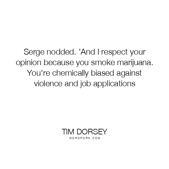 Serge nodded. 'And I respect your opinion because you smoke marijuana. You're chemically biased against violence and job applications