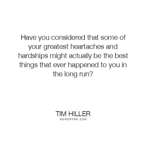 Have you considered that some of your greatest heartaches and hardships might actually be the best things that ever happened to you in the long run?