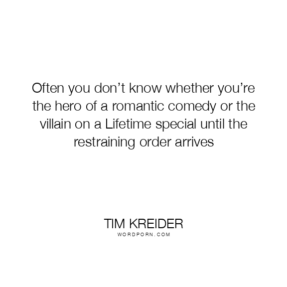 Often you don’t know whether you’re the hero of a romantic comedy or the villain on a Lifetime special until the restraining order arrives