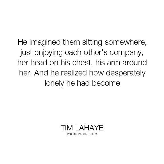 He imagined them sitting somewhere, just enjoying each other's company, her head on his chest, his arm around her. And he realized how desperately lonely he had become