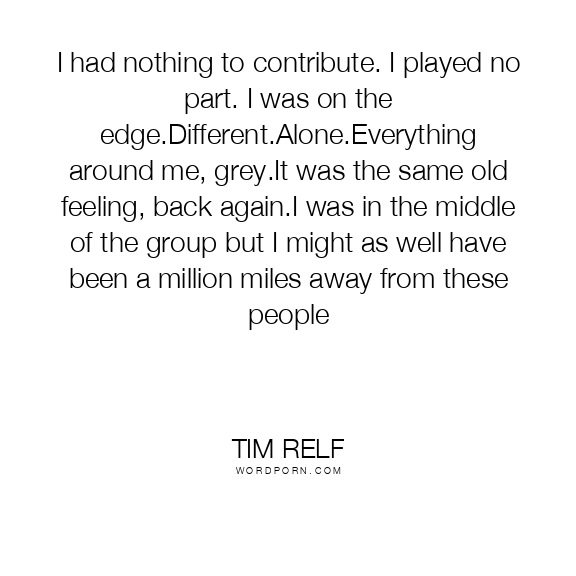 I had nothing to contribute. I played no part. I was on the edge.Different.Alone.Everything around me, grey.It was the same old feeling, back again.I was in the middle of the group but I might as well have been a million miles away from these people