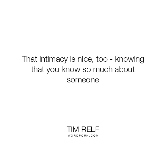 That intimacy is nice, too - knowing that you know so much about someone