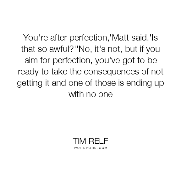 You're after perfection,'Matt said.'Is that so awful?''No, it's not, but if you aim for perfection, you've got to be ready to take the consequences of not getting it and one of those is ending up with no one