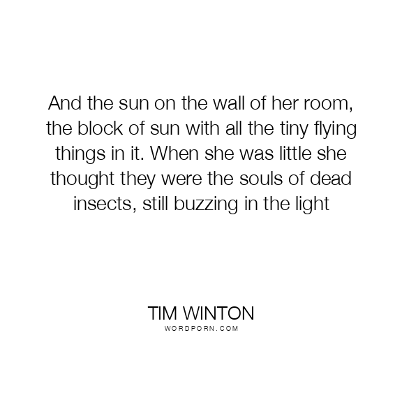 And the sun on the wall of her room, the block of sun with all the tiny flying things in it. When she was little she thought they were the souls of dead insects, still buzzing in the light