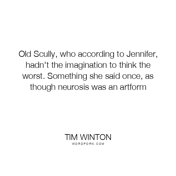 Old Scully, who according to Jennifer, hadn't the imagination to think the worst. Something she said once, as though neurosis was an artform